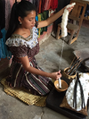 Actualmente somos 34 mujeres que trabajamos juntas creando telas artesanales, sembramos nuestro propio algodon en 4 colores nativos de (blanco, kakhy, ixcaco y verde). También trabajamos los tintes naturales, utilizando; semillas, hojas, flores, cortezas de arboles, etc. Todas nuestras prendas están tejidas en el tradicional telar de cintura.