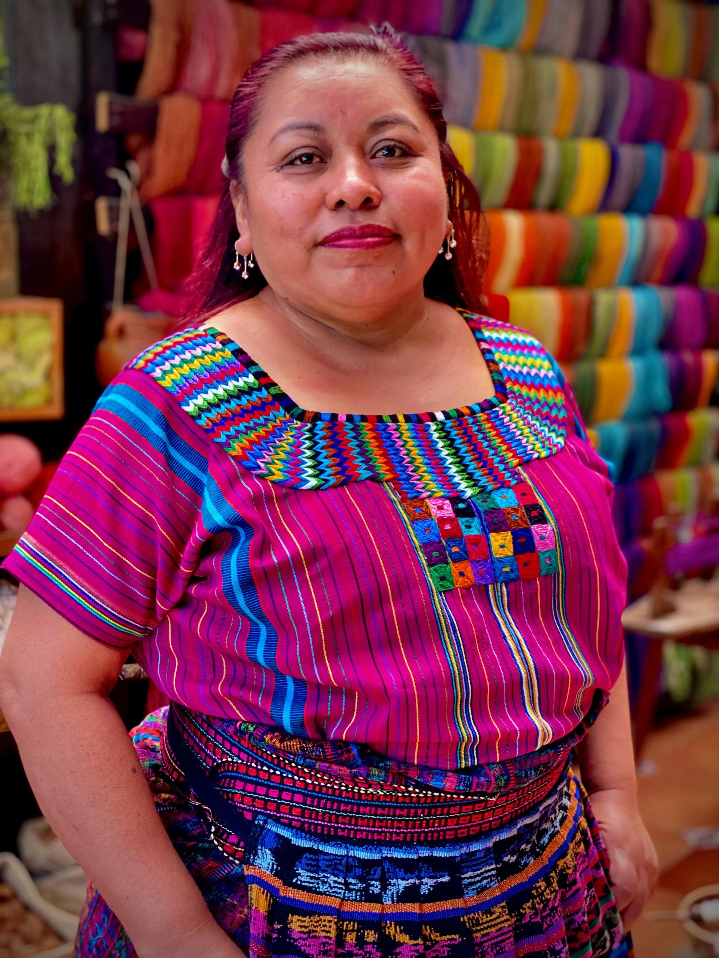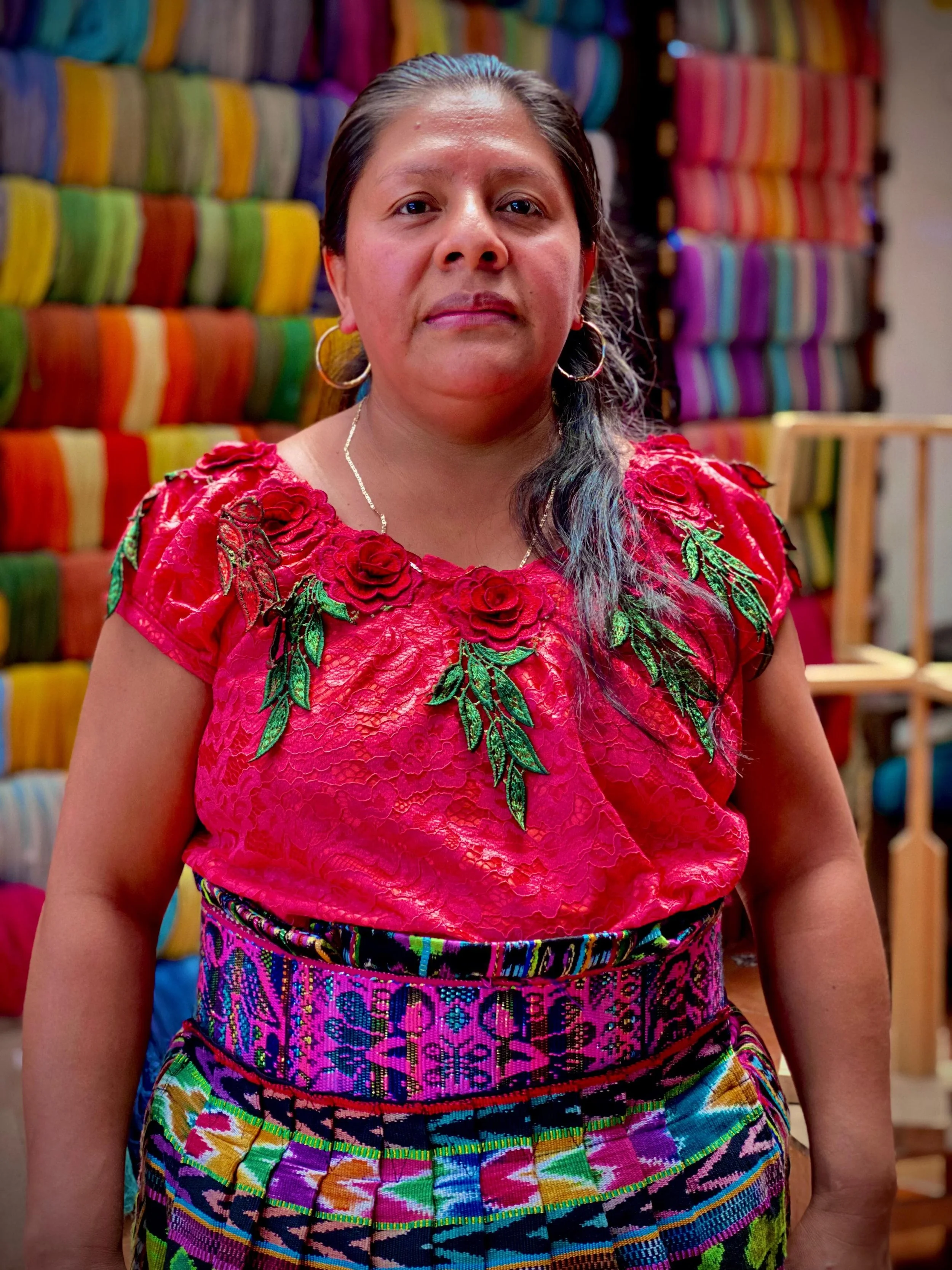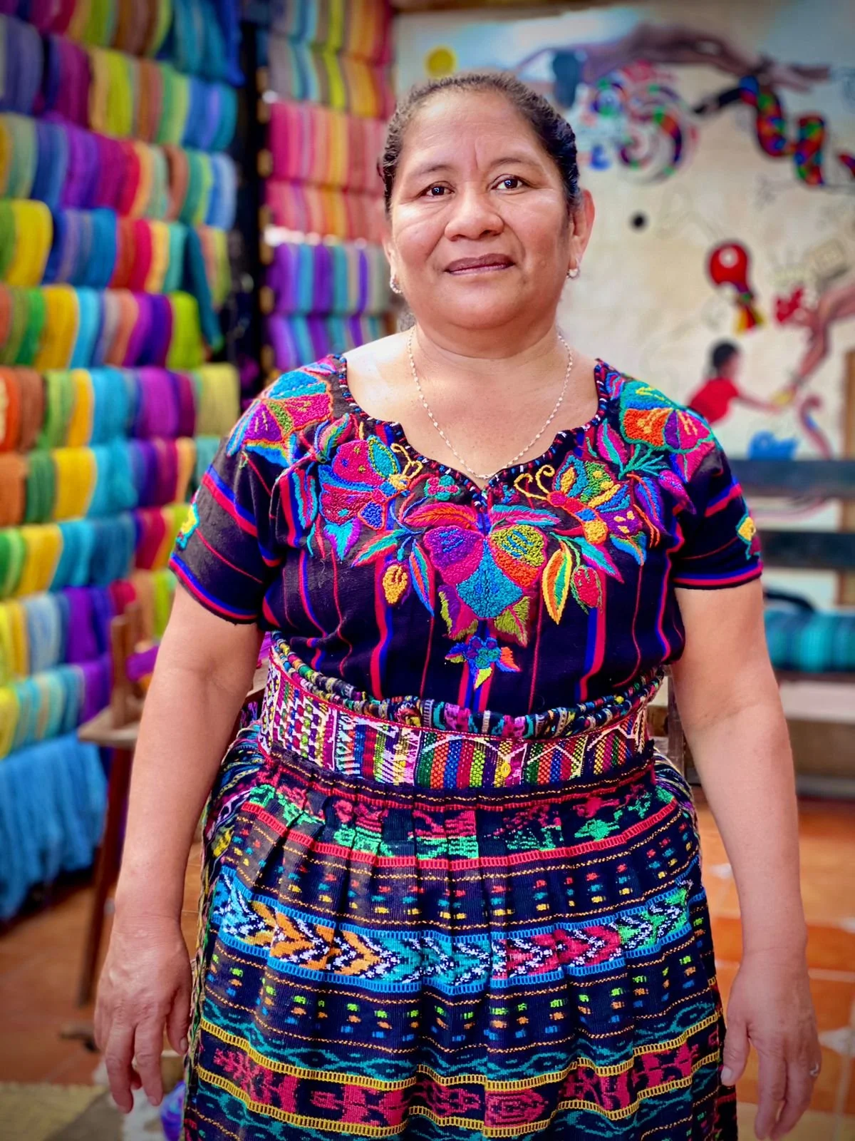 Meet Carlota López. Carlota's journey as a weaver began in San Antonio Aguascalientes, near Antigua, where she grew up surrounded by the rich tapestry of Guatemalan culture. Today, she is proud to call San Juan la Laguna her home, where she continues the age-old tradition of weaving.
