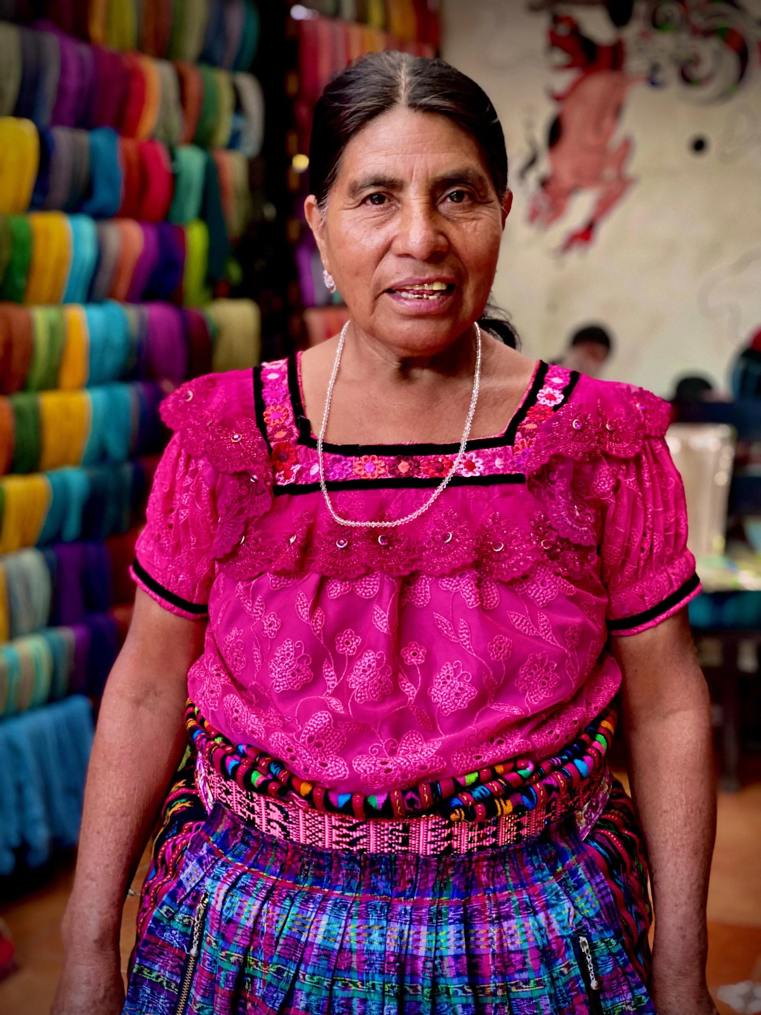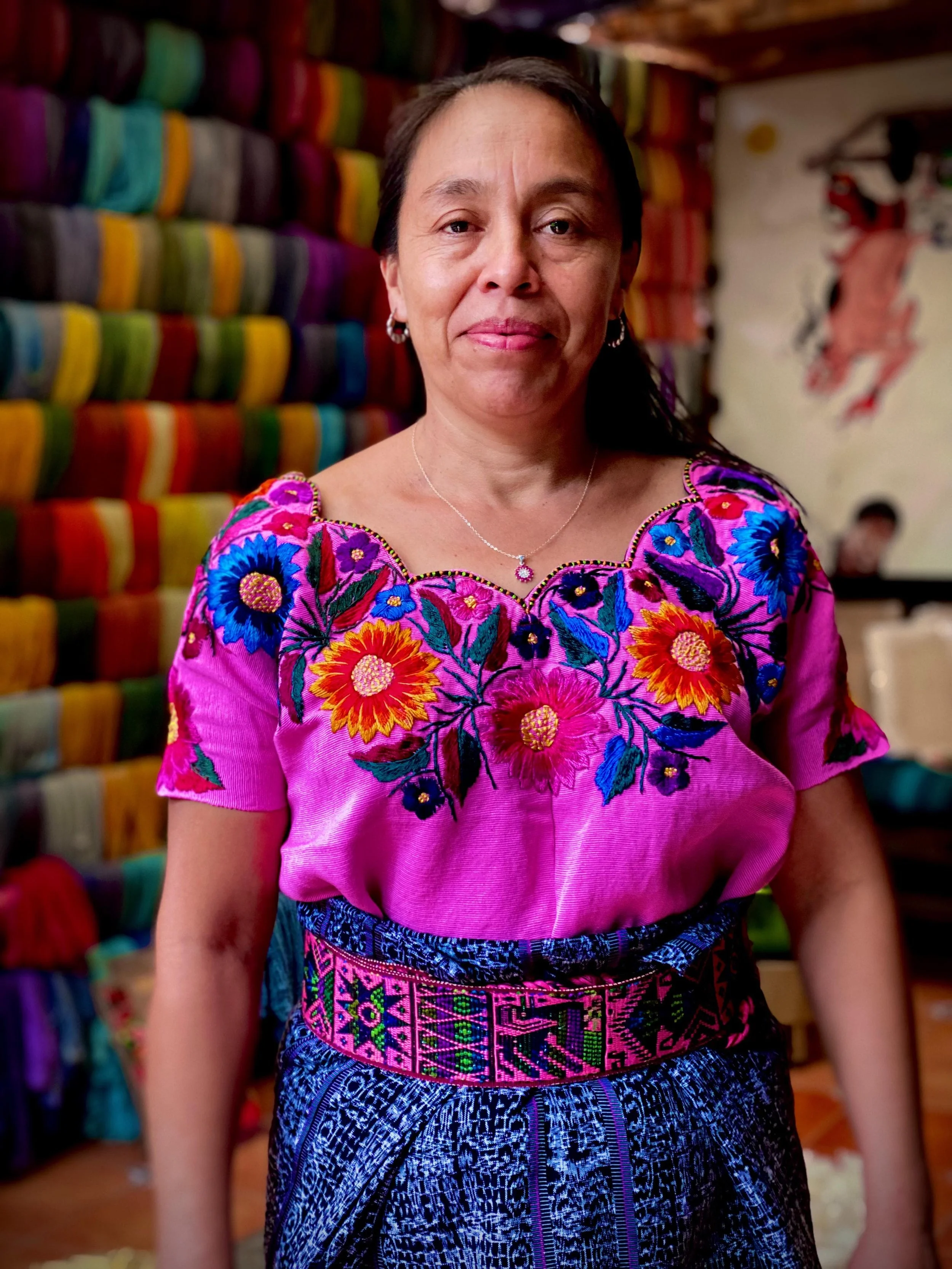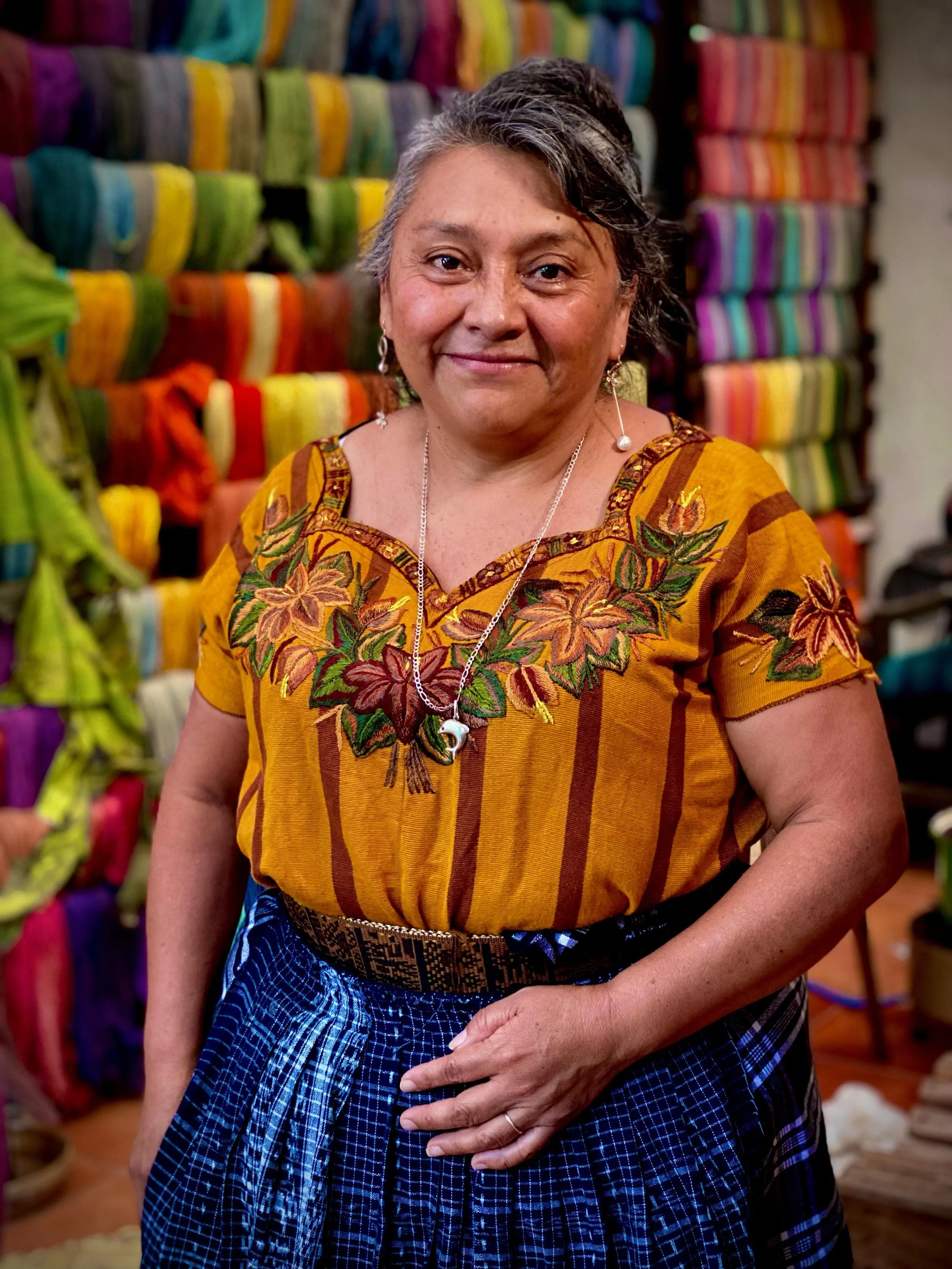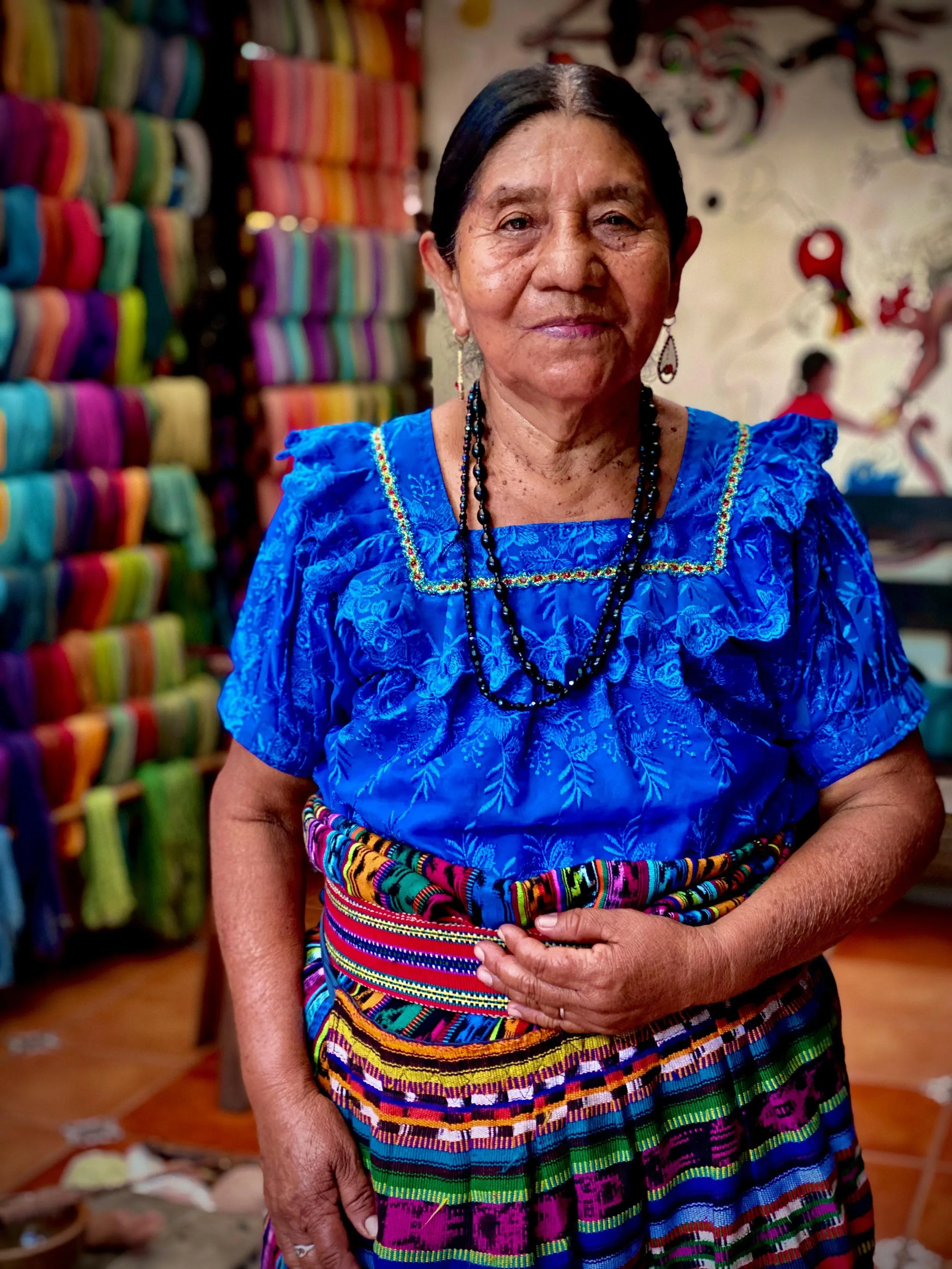 Meet Carlota López. Carlota's journey as a weaver began in San Antonio Aguascalientes, near Antigua, where she grew up surrounded by the rich tapestry of Guatemalan culture. Today, she is proud to call San Juan la Laguna her home, where she continues the age-old tradition of weaving.